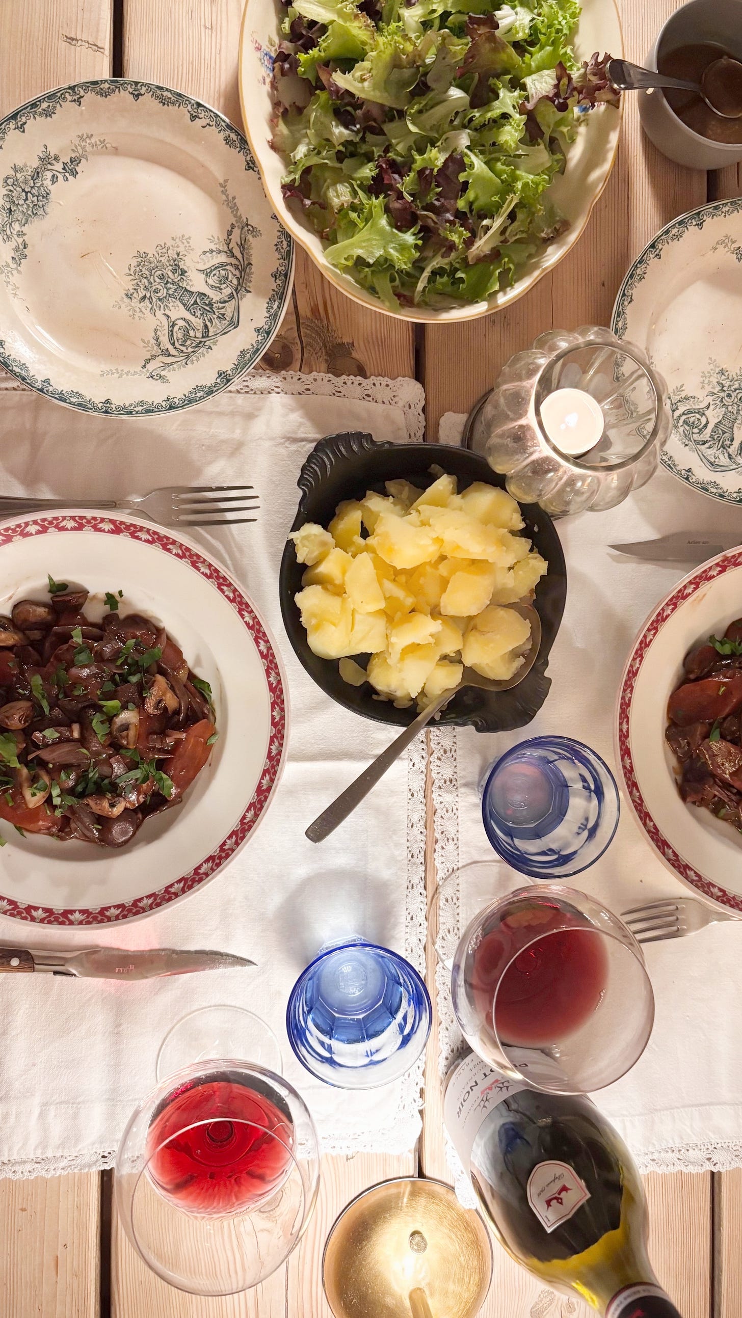 These days, however, it’s a plant-based version that emerges from my kitchen. It’s just as warming and rich, even though I use a quality plant-based chicken replacement. With a humble side of boiled potatoes and a green salad, it’s exactly the kind of dish I crave at this seasonal crossroad, when the cold still lingers, but you’re already longing for light.